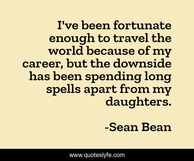 This page presents the quote "I've been fortunate enough to travel the world because of my career, but the downside has been spending long spells apart from my daughters.". Author of this quote is Sean Bean. This quote is about career, world, long,.