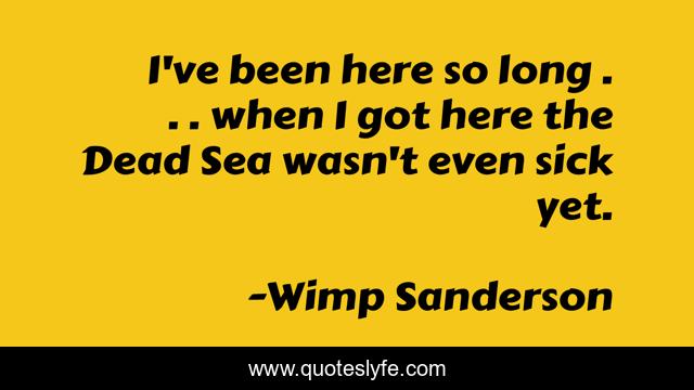 This page presents the quote "I've been here so long . . . when I got here the Dead Sea wasn't even sick yet.". Author of this quote is Wimp Sanderson. This quote is about yous, thank, closures,.