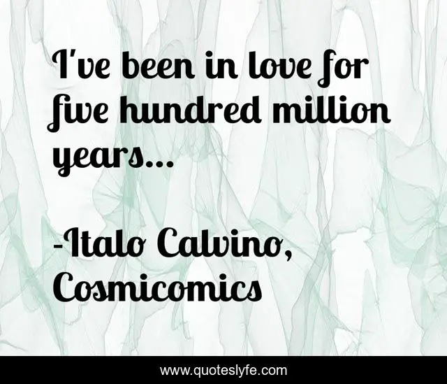 This page presents the quote "I've been in love for five hundred million years…". Author of this quote is Italo Calvino, Cosmicomics. This quote is about evolution, million, love, affection,.