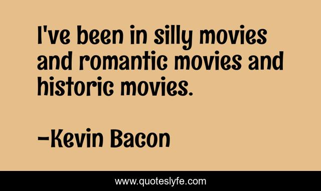 This page presents the quote "I've been in silly movies and romantic movies and historic movies.". Author of this quote is Kevin Bacon. This quote is about movies, silly, been,.