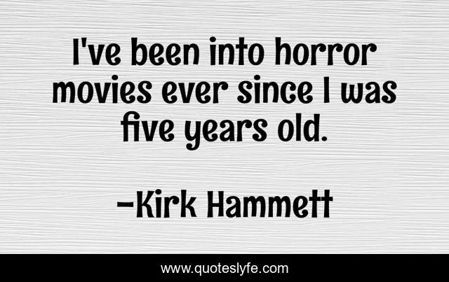 This page presents the quote "I've been into horror movies ever since I was five years old.". Author of this quote is Kirk Hammett. This quote is about horror, horror movies, years,.