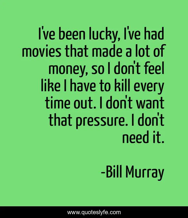 This page presents the quote "I've been lucky, I've had movies that made a lot of money, so I don't feel like I have to kill every time out. I don't want that pressure. I don't need it.". Author of this quote is Bill Murray. This quote is about money, time, pressure,.