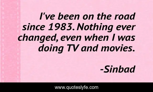 This page presents the quote "I've been on the road since 1983. Nothing ever changed, even when I was doing TV and movies.". Author of this quote is Sinbad. This quote is about nothing, road,.