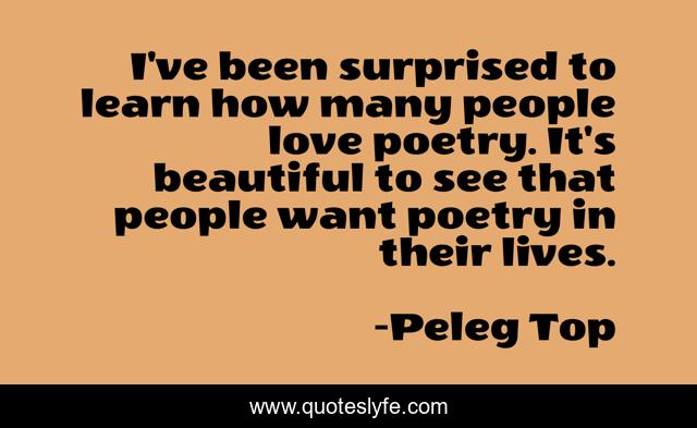 This page presents the quote "I've been surprised to learn how many people love poetry. It's beautiful to see that people want poetry in their lives.". Author of this quote is Peleg Top. This quote is about beautiful, love, affection, people,.