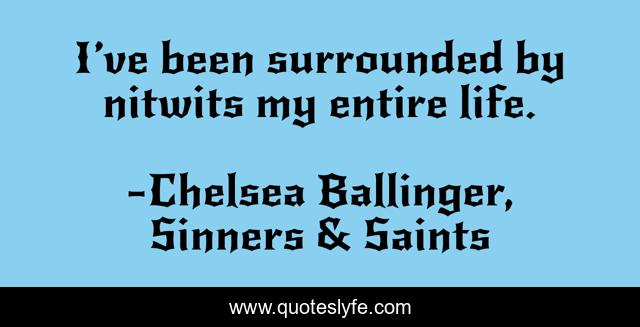 "Chelsea Ballinger, Sinners & Saints Quotes." Quoteslyfe.com, 2025. Fri. 05 Dec. 2025. <https://www.quoteslyfe.com/quote/I-ve-been-surrounded-by-nitwits-my-210913>.