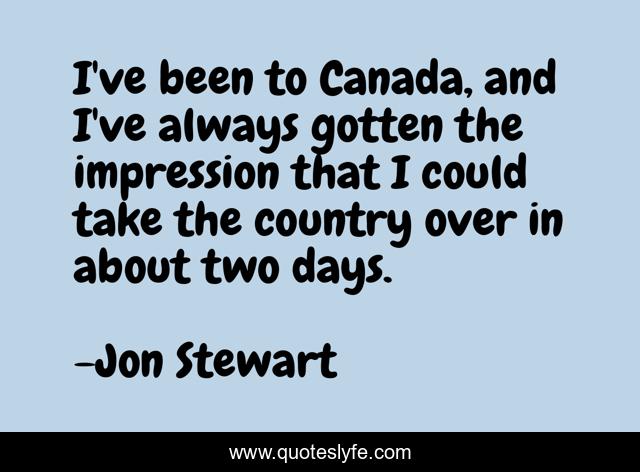"Jon Stewart Quotes." Quoteslyfe.com, 2025. Sun. 07 Dec. 2025. <https://www.quoteslyfe.com/quote/I-ve-been-to-Canada-and-I-40302>.