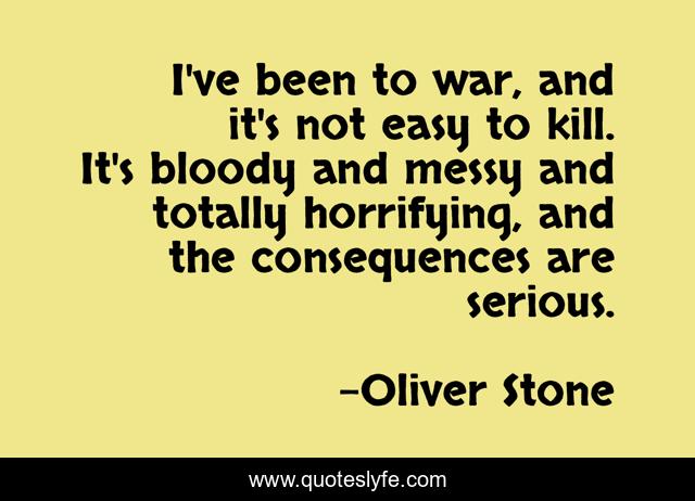 This page presents the quote "I've been to war, and it's not easy to kill. It's bloody and messy and totally horrifying, and the consequences are serious.". Author of this quote is Oliver Stone. This quote is about politics, easy, consequences,.