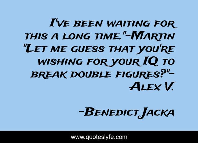This page presents the quote "I've been waiting for this a long time."-Martin "Let me guess that you're wishing for your IQ to break double figures?"- Alex V.". Author of this quote is Benedict Jacka. .