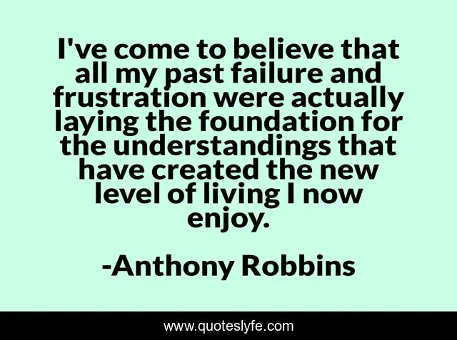This page presents the quote "I've come to believe that all my past failure and frustration were actually laying the foundation for the understandings that have created the new level of living I now enjoy.". Author of this quote is Anthony Robbins. This quote is about life, wisdom,.