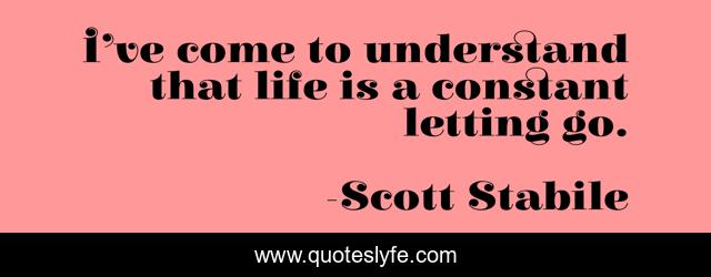 This page presents the quote "I’ve come to understand that life is a constant letting go.". Author of this quote is Scott Stabile. This quote is about letting-go, let-go, motivation, moving, inspiration,.