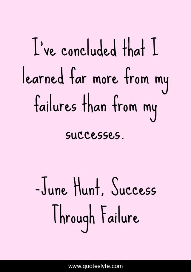 "June Hunt, Success Through Failure Quotes." Quoteslyfe.com, 2025. Fri. 05 Dec. 2025. <https://www.quoteslyfe.com/quote/I-ve-concluded-that-I-learned-far-145245>.