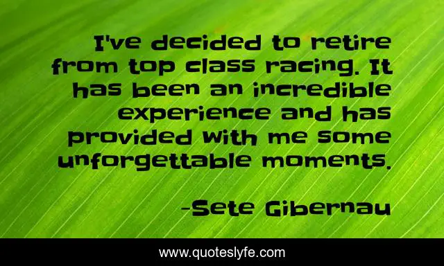 This page presents the quote "I've decided to retire from top class racing. It has been an incredible experience and has provided with me some unforgettable moments.". Author of this quote is Sete Gibernau. This quote is about me, moments, racing,.