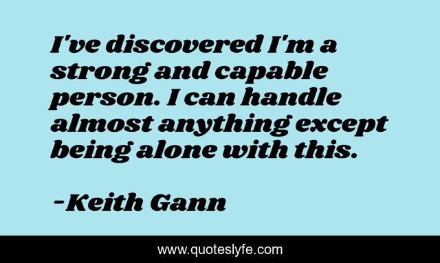 This page presents the quote "I've discovered I'm a strong and capable person. I can handle almost anything except being alone with this.". Author of this quote is Keith Gann. This quote is about helping, people,.