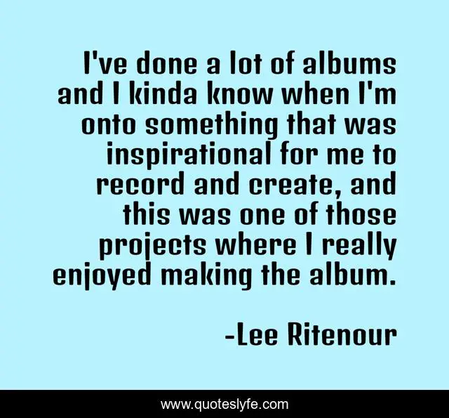 This page presents the quote "I've done a lot of albums and I kinda know when I'm onto something that was inspirational for me to record and create, and this was one of those projects where I really enjoyed making the album.". Author of this quote is Lee Ritenour. This quote is about me, done,.