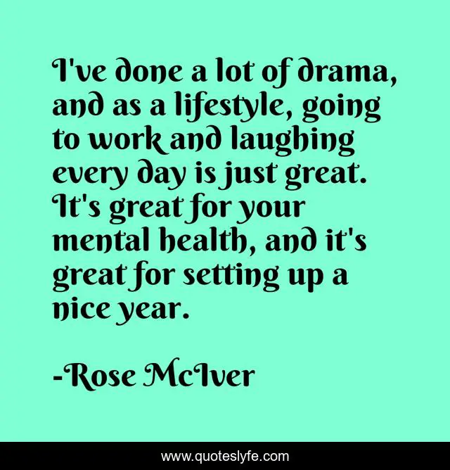 This page presents the quote "I've done a lot of drama, and as a lifestyle, going to work and laughing every day is just great. It's great for your mental health, and it's great for setting up a nice year.". Author of this quote is Rose McIver. This quote is about great, work, day,.