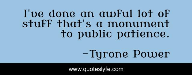 This page presents the quote "I've done an awful lot of stuff that's a monument to public patience.". Author of this quote is Tyrone Power. This quote is about done, public, monument,.