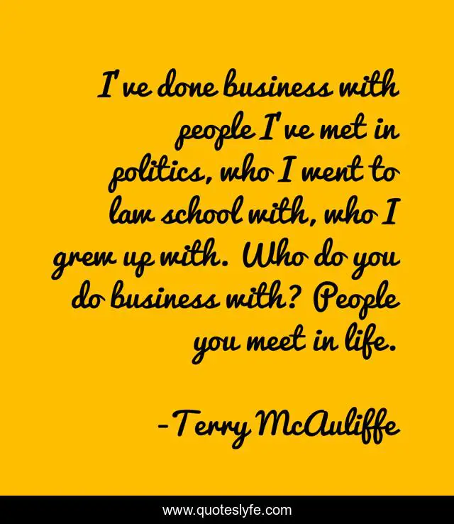 This page presents the quote "I've done business with people I've met in politics, who I went to law school with, who I grew up with. Who do you do business with? People you meet in life.". Author of this quote is Terry McAuliffe. This quote is about politics, life, school,.