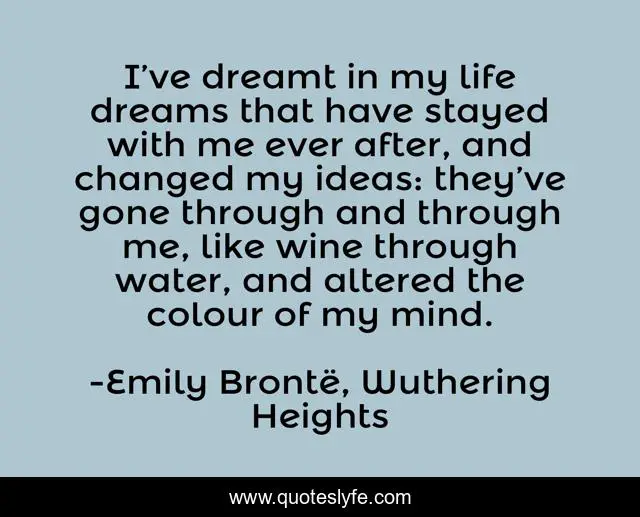 "Emily Brontë, Wuthering Heights Quotes." Quoteslyfe.com, 2025. Fri. 05 Dec. 2025. <https://www.quoteslyfe.com/quote/I-ve-dreamt-in-my-life-dreams-53289>.