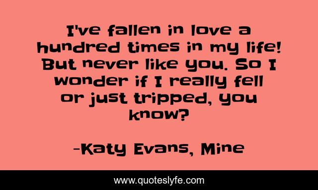 This page presents the quote "I've fallen in love a hundred times in my life! But never like you. So I wonder if I really fell or just tripped, you know?". Author of this quote is Katy Evans, Mine. .