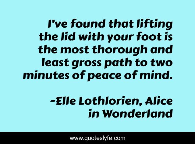 This page presents the quote "I’ve found that lifting the lid with your foot is the most thorough and least gross path to two minutes of peace of mind.". Author of this quote is Elle Lothlorien, Alice in Wonderland. .