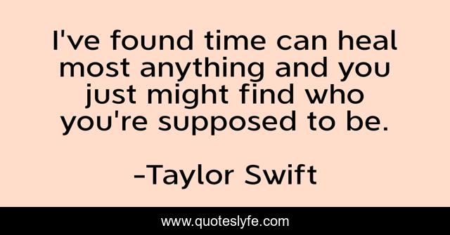 This page presents the quote "I've found time can heal most anything and you just might find who you're supposed to be.". Author of this quote is Taylor Swift. This quote is about fifteen, music, taylor-swift,.