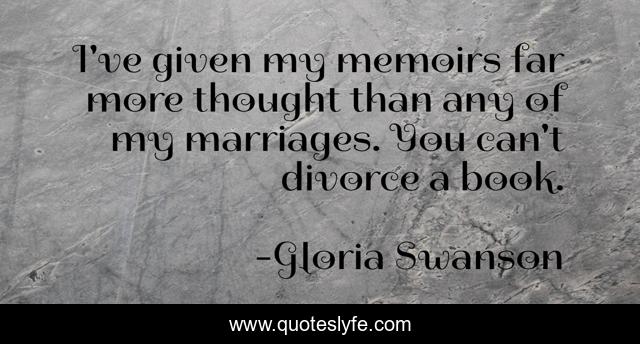 This page presents the quote "I've given my memoirs far more thought than any of my marriages. You can't divorce a book.". Author of this quote is Gloria Swanson. .