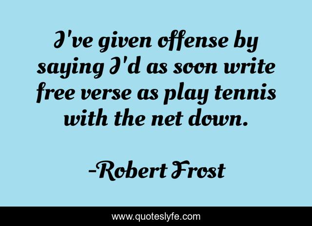 This page presents the quote "I've given offense by saying I'd as soon write free verse as play tennis with the net down.". Author of this quote is Robert Frost. .