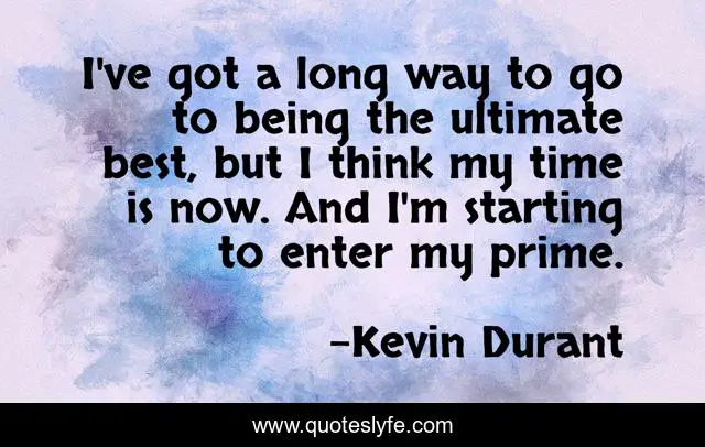 This page presents the quote "I've got a long way to go to being the ultimate best, but I think my time is now. And I'm starting to enter my prime.". Author of this quote is Kevin Durant. This quote is about think, long, time,.