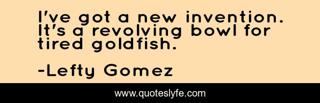 This page presents the quote "I've got a new invention. It's a revolving bowl for tired goldfish.". Author of this quote is Lefty Gomez. This quote is about new, bowl, tired,.