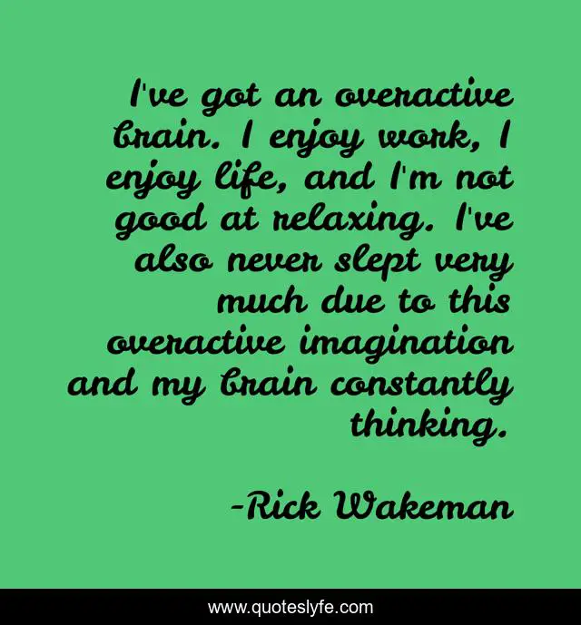 This page presents the quote "I've got an overactive brain. I enjoy work, I enjoy life, and I'm not good at relaxing. I've also never slept very much due to this overactive imagination and my brain constantly thinking.". Author of this quote is Rick Wakeman. This quote is about life, work, good,.