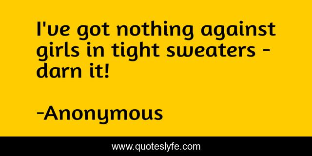 This page presents the quote "I've got nothing against girls in tight sweaters - darn it!". Author of this quote is Anonymous. This quote is about vices, foibles,.