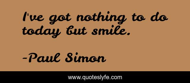 This page presents the quote "I've got nothing to do today but smile.". Author of this quote is Paul Simon. This quote is about life, happiness,.