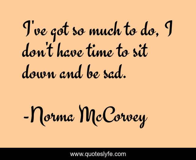 This page presents the quote "I've got so much to do, I don't have time to sit down and be sad.". Author of this quote is Norma McCorvey. This quote is about down, time, sit,.