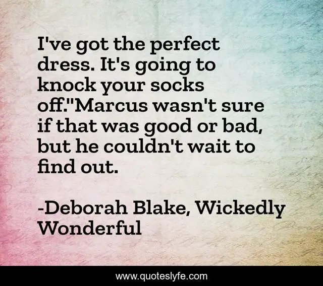 This page presents the quote "I've got the perfect dress. It's going to knock your socks off."Marcus wasn't sure if that was good or bad, but he couldn't wait to find out.". Author of this quote is Deborah Blake, Wickedly Wonderful. This quote is about fractured-folk-tale, russian-fairy-tales, witches, dragons,.