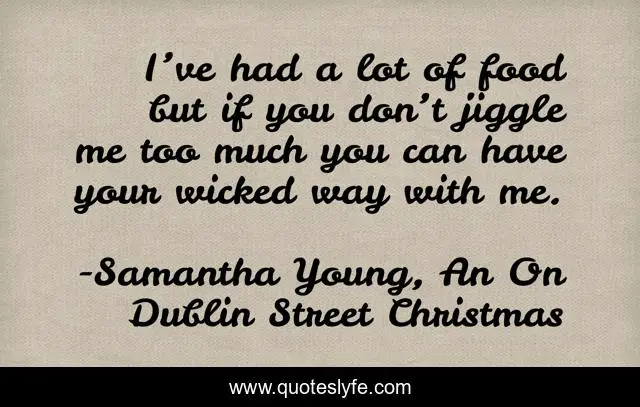 This page presents the quote "I’ve had a lot of food but if you don’t jiggle me too much you can have your wicked way with me.". Author of this quote is Samantha Young, An On Dublin Street Christmas. .