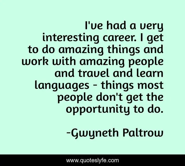 "Gwyneth Paltrow Quotes." Quoteslyfe.com, 2025. Mon. 08 Dec. 2025. <https://www.quoteslyfe.com/quote/I-ve-had-a-very-interesting-career-304552>.