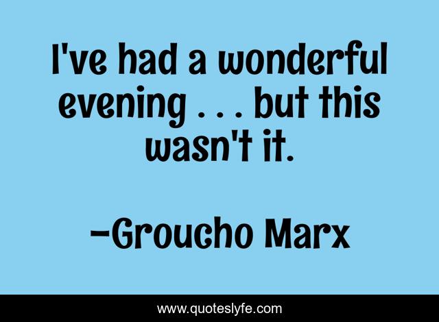 "Groucho Marx Quotes." Quoteslyfe.com, 2025. Mon. 08 Dec. 2025. <https://www.quoteslyfe.com/quote/I-ve-had-a-wonderful-evening-but-277371>.
