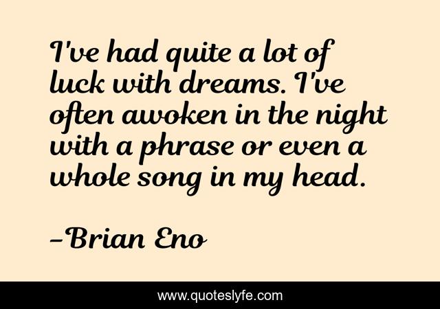 This page presents the quote "I've had quite a lot of luck with dreams. I've often awoken in the night with a phrase or even a whole song in my head.". Author of this quote is Brian Eno. This quote is about luck, night, song,.