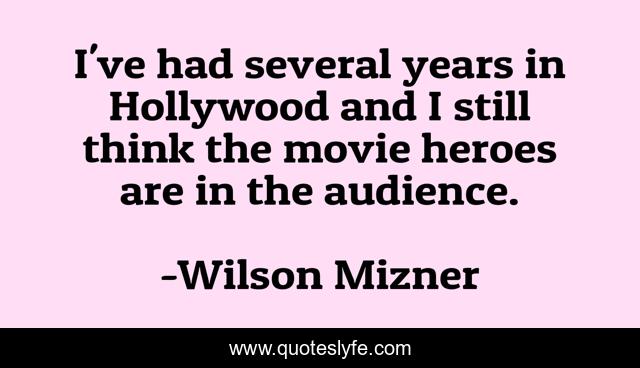 This page presents the quote "I've had several years in Hollywood and I still think the movie heroes are in the audience.". Author of this quote is Wilson Mizner. .