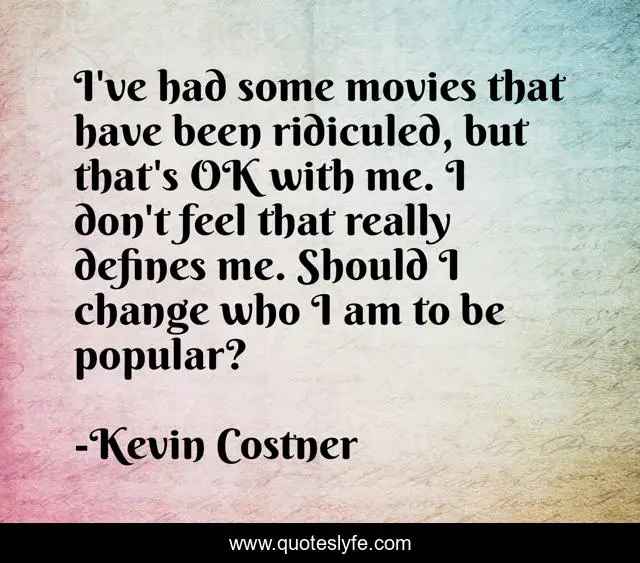 This page presents the quote "I've had some movies that have been ridiculed, but that's OK with me. I don't feel that really defines me. Should I change who I am to be popular?". Author of this quote is Kevin Costner. This quote is about me, change,.