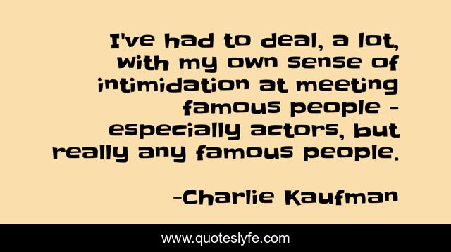 This page presents the quote "I've had to deal, a lot, with my own sense of intimidation at meeting famous people - especially actors, but really any famous people.". Author of this quote is Charlie Kaufman. This quote is about famous people, people,.
