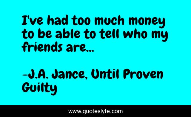 This page presents the quote "I've had too much money to be able to tell who my friends are...". Author of this quote is J.A. Jance, Until Proven Guilty. This quote is about money, friends,.