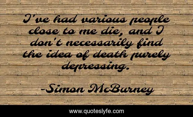 This page presents the quote "I've had various people close to me die, and I don't necessarily find the idea of death purely depressing.". Author of this quote is Simon McBurney. This quote is about me, die, people,.