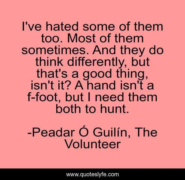 "Peadar Ó Guilín, The Volunteer Quotes." Quoteslyfe.com, 2025. Fri. 05 Dec. 2025. <https://www.quoteslyfe.com/quote/I-ve-hated-some-of-them-too-259069>.