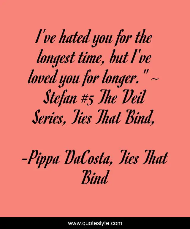 "Pippa DaCosta, Ties That Bind Quotes." Quoteslyfe.com, 2025. Fri. 05 Dec. 2025. <https://www.quoteslyfe.com/quote/I-ve-hated-you-for-the-longest-232242>.