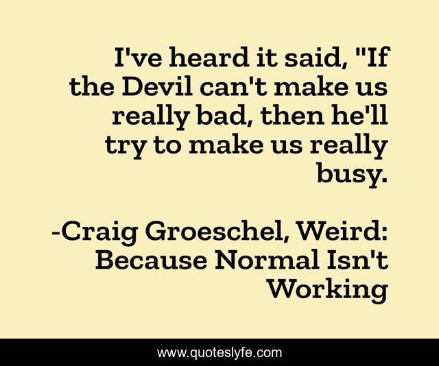 This page presents the quote "I've heard it said, "If the Devil can't make us really bad, then he'll try to make us really busy.". Author of this quote is Craig Groeschel, Weird: Because Normal Isn't Working. This quote is about then, devil, make, us, he-ll, try, to, bad, busy,.