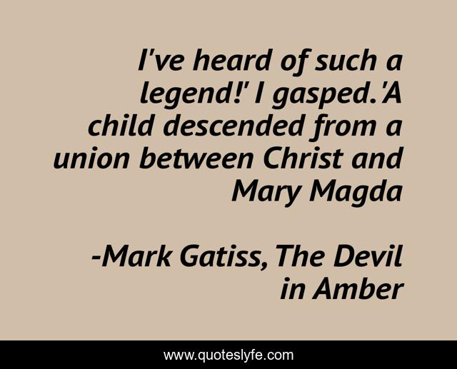This page presents the quote "I've heard of such a legend!' I gasped. 'A child descended from a union between Christ and Mary Magda". Author of this quote is Mark Gatiss, The Devil in Amber. This quote is about humor, christianity,.