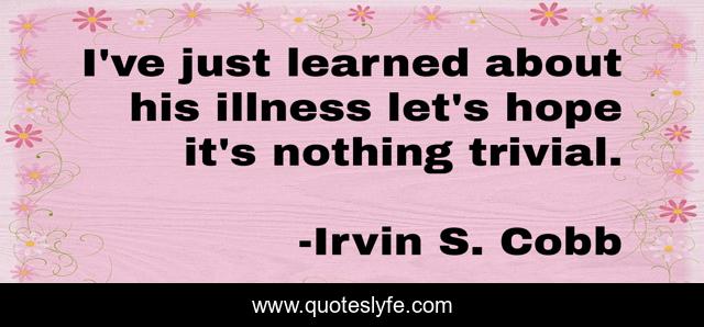 This page presents the quote "I've just learned about his illness let's hope it's nothing trivial.". Author of this quote is Irvin S. Cobb. .