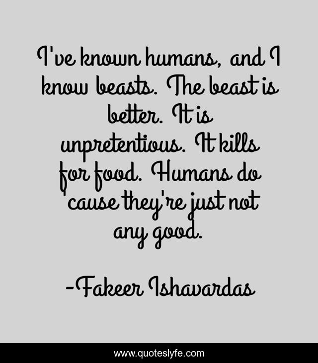 "Fakeer Ishavardas Quotes." Quoteslyfe.com, 2025. Mon. 08 Dec. 2025. <https://www.quoteslyfe.com/quote/I-ve-known-humans-and-I-know-175184>.