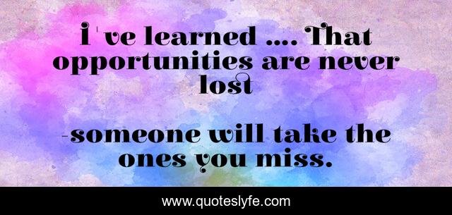 This page presents the quote "I've learned .... That opportunities are never lost". Author of this quote is someone will take the ones you miss.. .